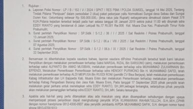 LUBUKLINGGAU, Iniklik,com ,- Kasus pencemaran nama baik dan penganiayaan yang menimpa Siti Dessy Rodiah, istri almarhum Agus Hubya Handoyo (Ketua Serikat Media Siber Indonesia/SMSI Kabupaten Musi Rawas), yang dilakukan oleh…