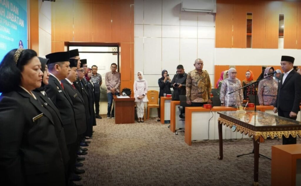 Ogan Ilir, Iniklik.com – Bupati Ogan Ilir, Panca Wijaya Akbar, Bersama Wakil Bupati H. Ardani, Sekda H. Muhsin Abdullah, dan Asisten III Sekda OI, menggelar upacara pelantikan dan pengambilan sumpah jabatan Pejabat Pimpinan Tinggi Pratama dan Pejabat Fungsional di lingkungan Pemerintah Kabupaten Ogan Ilir, pada hari Jumat (22/08/2025) di Ruang Rapat Utama KPT Tanjung Senai, Indralaya.