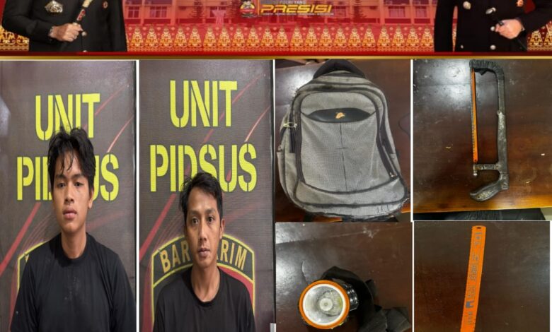 Barang bukti yang disita dari para pelaku antara lain Satu ransel merk PROGESS warna abu-abu, Satu bilah gergaji besi, Satu unit senter kepala warna hitam dan Satu bilah mata gergaji besi