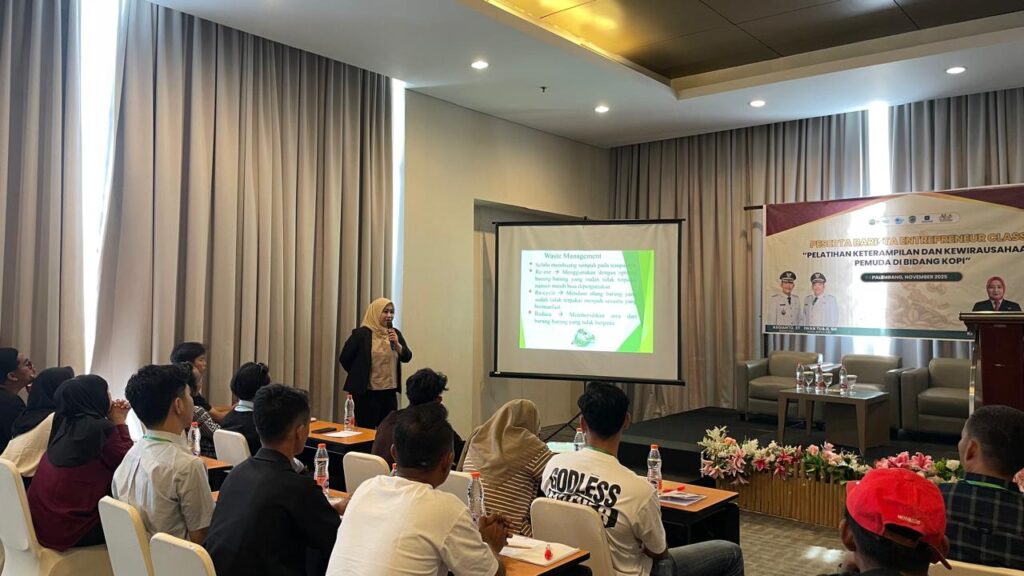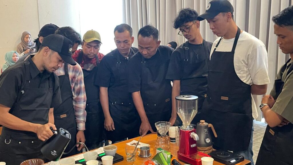 Bertempat di salah satu Barista Entrepreneur Class di Kota Palembang, pelatihan ini mencakup berbagai aspek, mulai dari pengenalan biji kopi, teknik penyeduhan (manual dan mesin espresso), hingga pembuatan latte art. Selain itu, peserta juga mendapatkan pengetahuan tentang bisnis kopi, penanganan pelanggan, serta standar operasional dan kesehatan kerja (K3) di bidang perkopian. Pelatihan ini dilaksanakan pada Rabu, 19 November 2025.