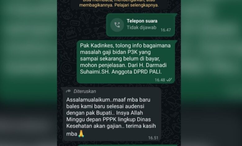 PALI, Iniklik.com — Di tengah keringat para bidan PPPK yang mengabdi di pelosok wilayah PALI, gaji yang menjadi hak mereka justru tak kunjung dibayarkan hingga akhir tahun 2025. Ironisnya, ketika anggota DPRD PALI mencoba meminta penjelasan, Kepala Dinas Kesehatan PALI, Faruk, M.Kes., justru menunjukkan sikap yang membuat publik geram.