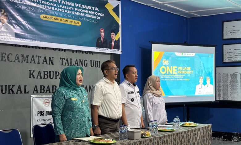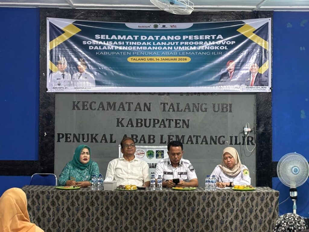 PALI, Iniklik.com – Dalam rangka memperkuat program One Village One Product (OVOP) Kampung Jengkol, Dinas Koperasi dan Usaha Mikro, Kecil, dan Menengah (UMKM) Kabupaten Penukal Abab Lematang Ilir (PALI), menjalin sinergi dengan Lurah Talang Ubi Timur